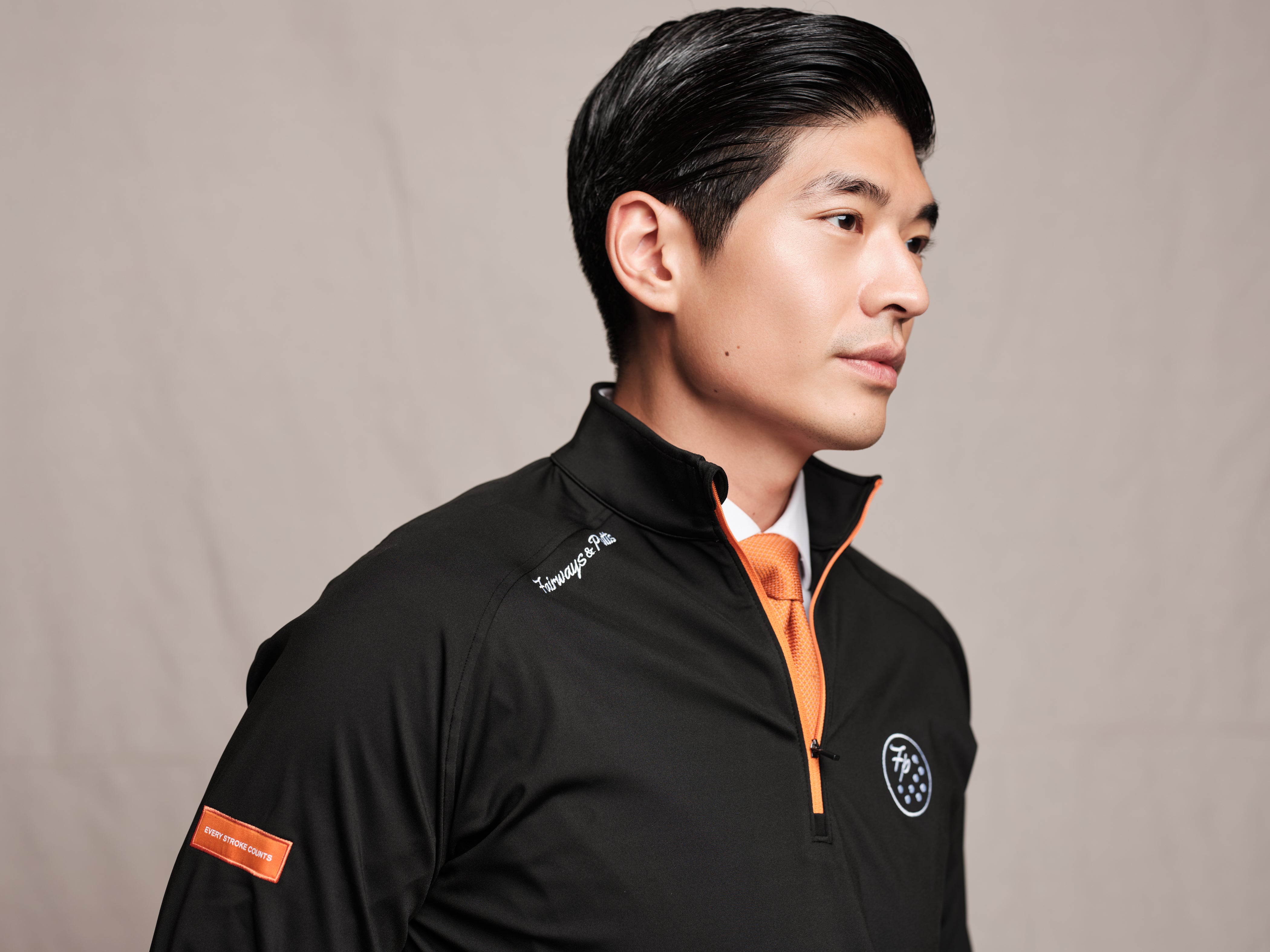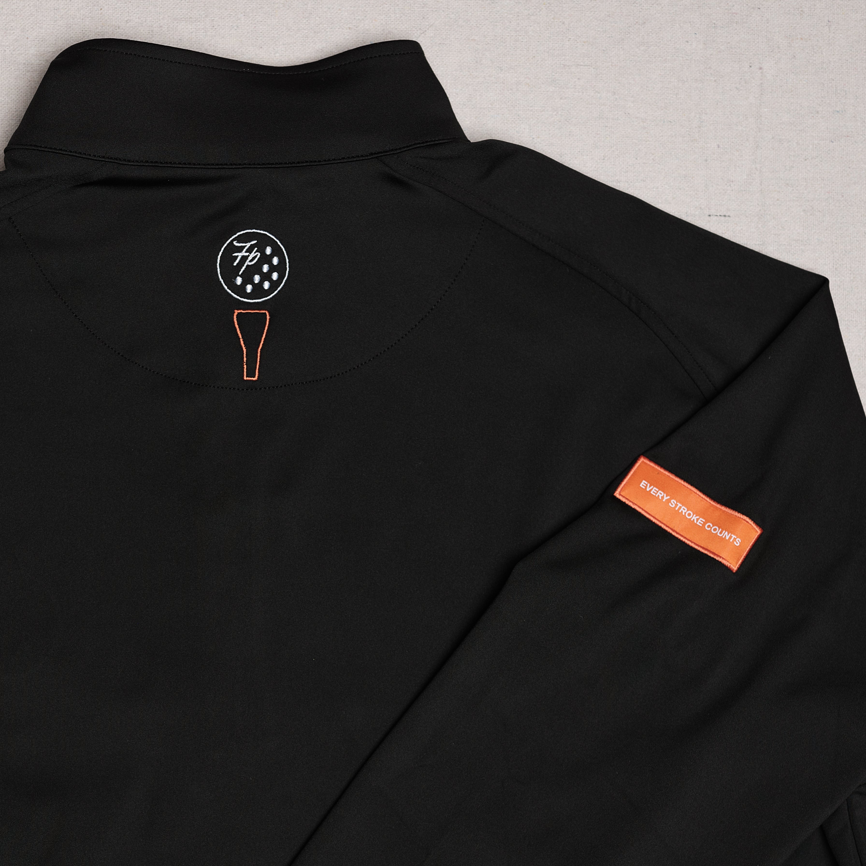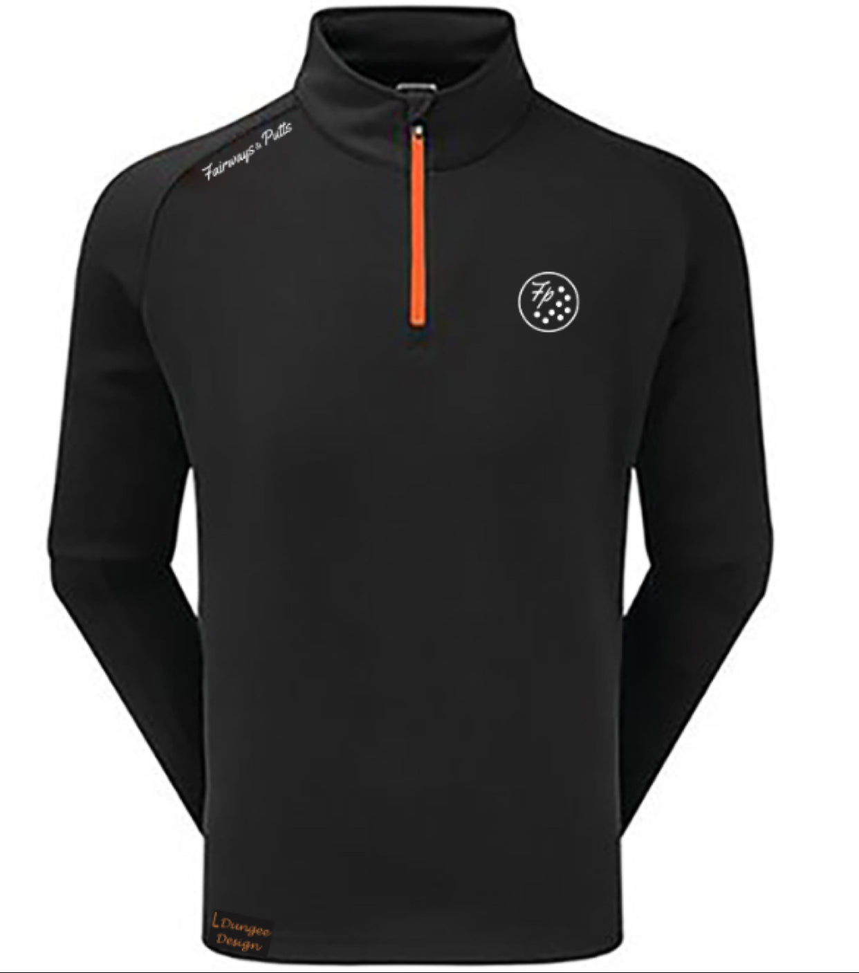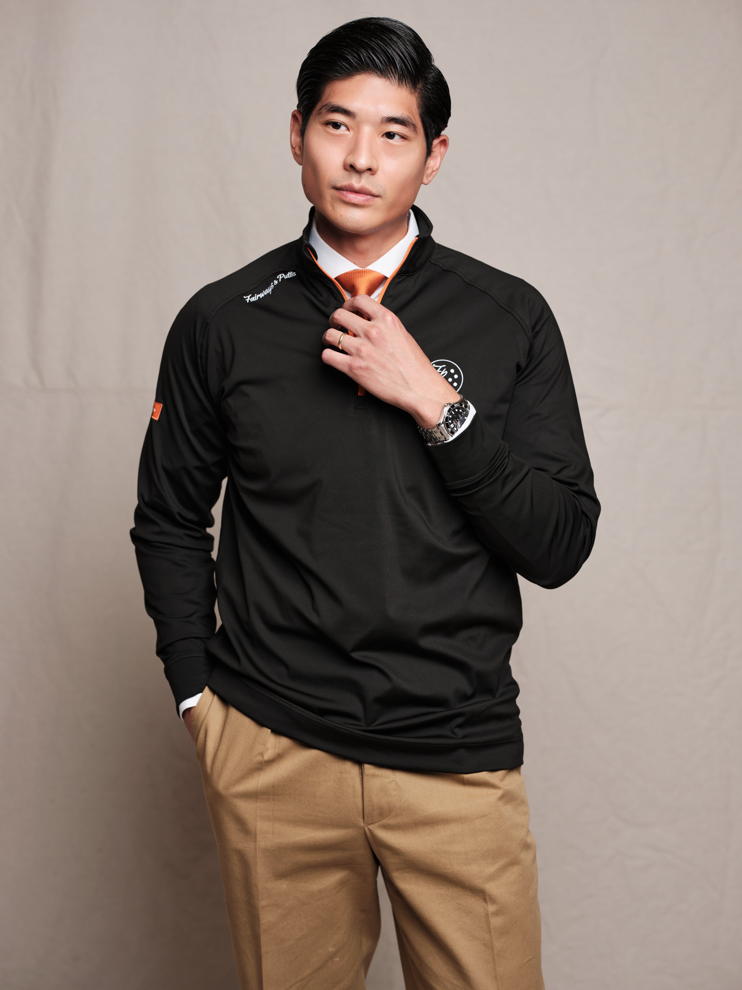 The Fairways and Putts premium quarter zip, often exemplified by their versatility is designed for golfers and lifestyle buyers seeking a combination of performance and style. Designed to be a durable and high-performing garment that doesn't compromise on style. The orange zipper likely serves as a distinctive visual detail, adding a pop of color and complementing the pullover's overall aesthetic.