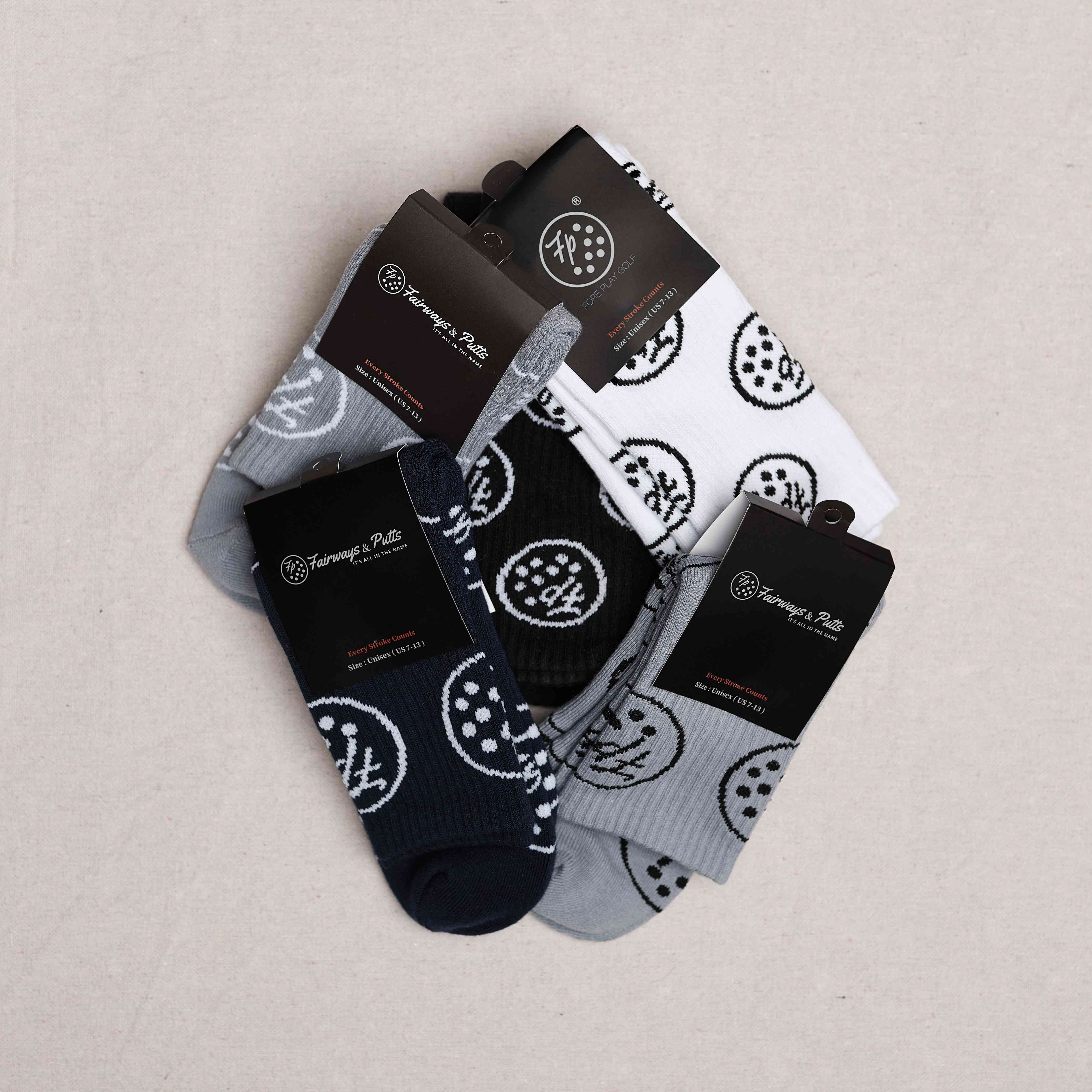 Fairways and Putts Signature Golf Socks are designed to enhance your golf game through a combination of comfort, performance features like moisture-wicking and strategic padding, and a stylish design that complements your golf ensemble.