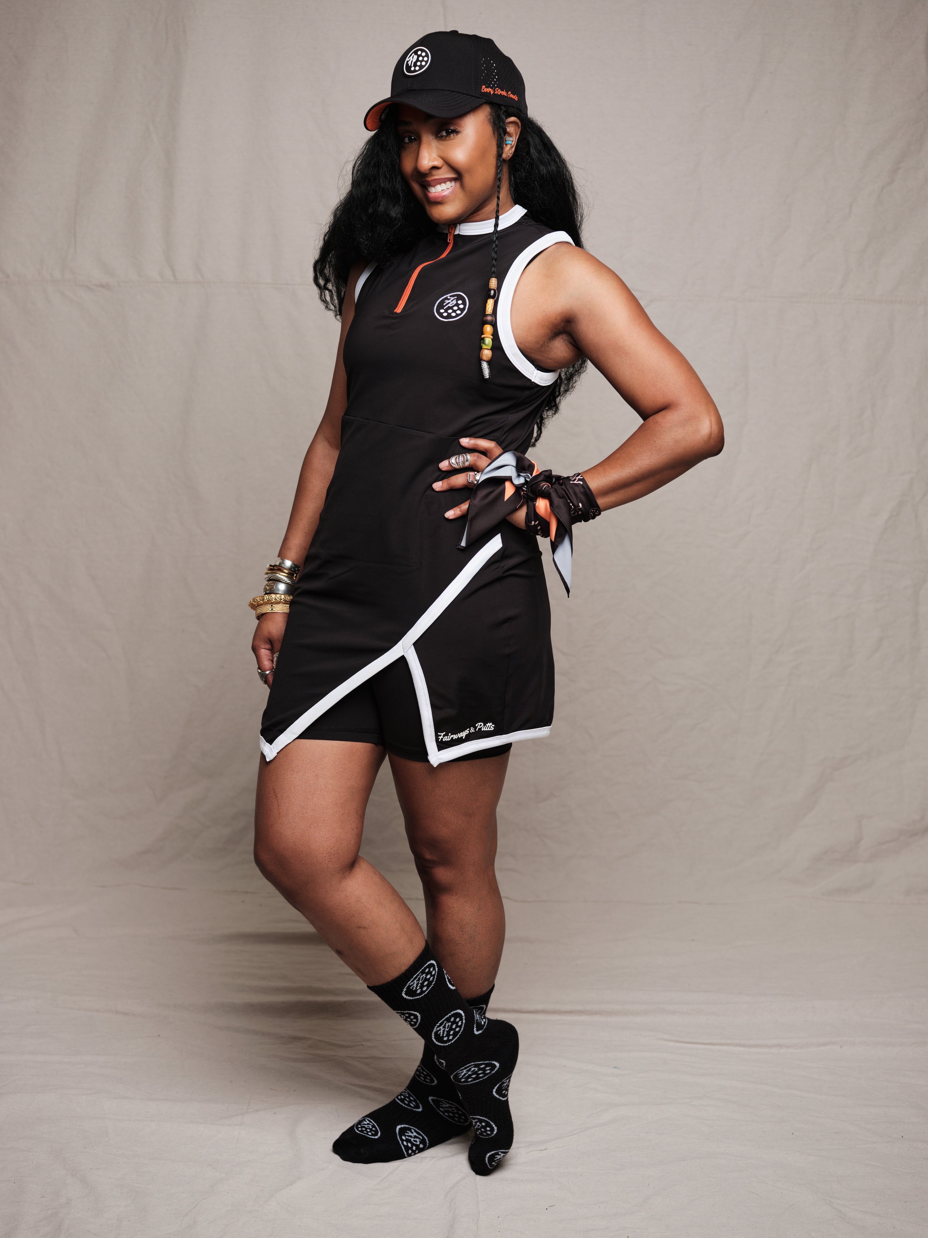 Fairways and Putts premium sleeveless dress with a separate spandex combo is a premium offering that prioritizes comfort, flexibility, and style, catering to the needs of women golfers and those seeking comfortable and practical activewear